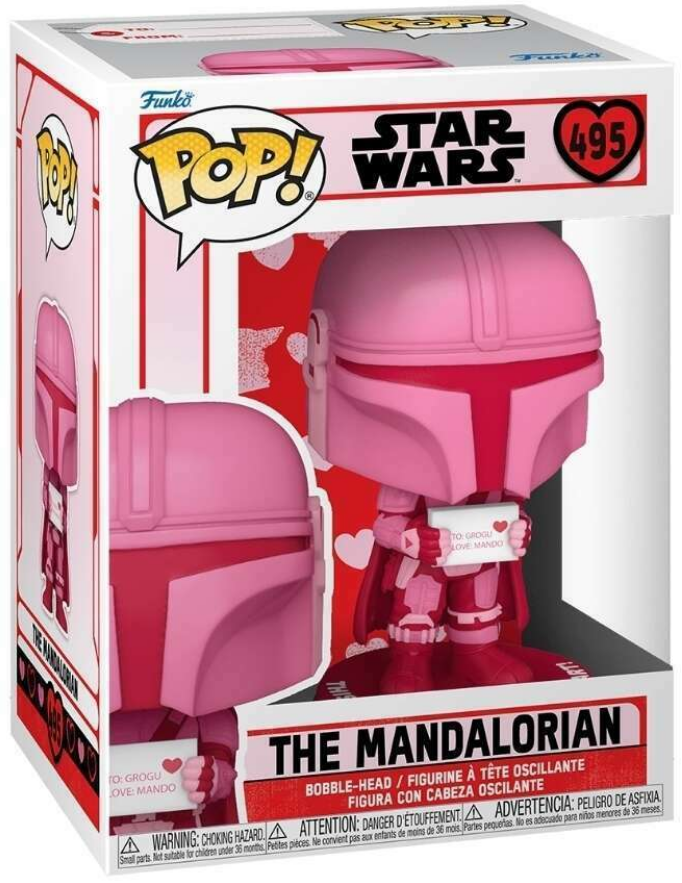 Choose your Valentine with the exclusive, Star War Valentine's Day Pop! The Mandalorian. His red, pink, and white color scheme makes for a vibrant addition to any Star Wars collection, and there's a sweet message written at his feet.
