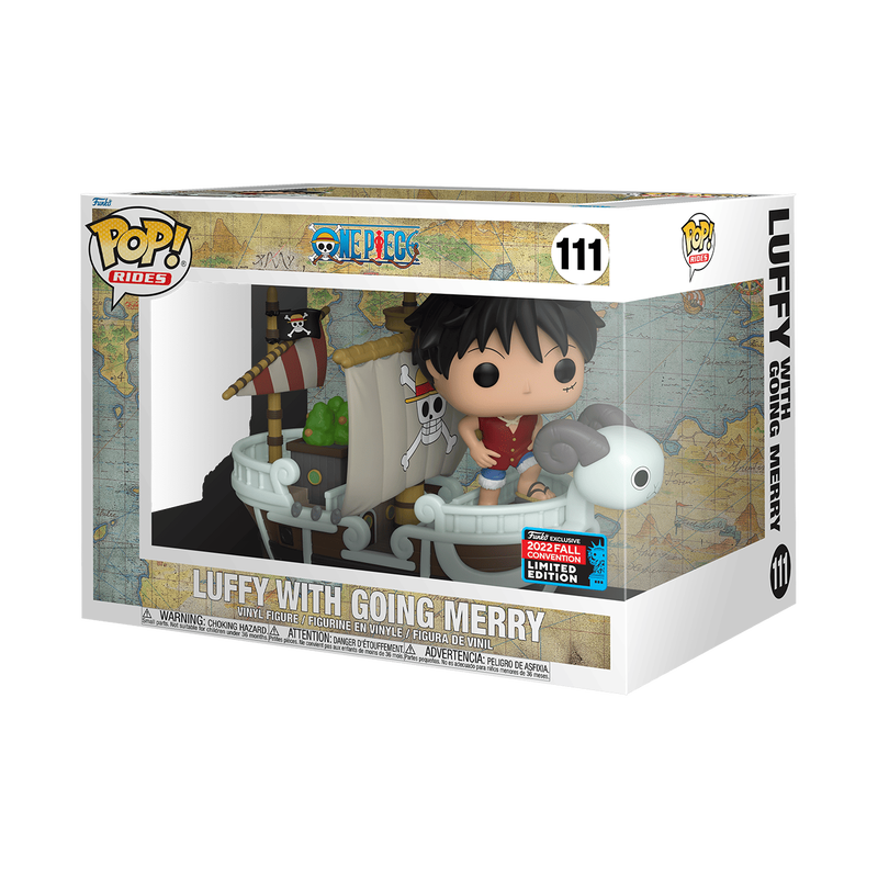 Set sail on a voyage with Pop! Luffy aboard the Going Merry! This 2022 New York Comic-Con exclusive Pop! Rides collectible is modeled after the first full-sized ship owned by the Straw Hat Pirates. Trustworthy, resilient, and ready for adventure, Pop! Luffy and the Going Merry want to head straight into your One Piece collection. Climb aboard but keep an eye out for Laboon! Vinyl figure is approximately 6.16-inches tall.